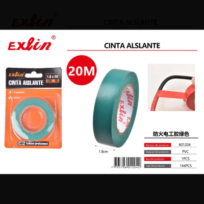 防火电工胶绿色18mm*20M*0.13mm cinta aislante, verde,ignífuga, 18 mm x 20 m x 0,13 mm