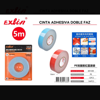 PE双面胶(蓝红膜白泡绵)红蓝混装18X5M cinta adhesiva de doble faz de PE (espuma blanca con película roja y azul)