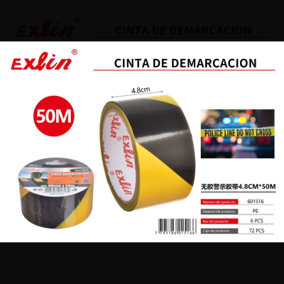 4.8cm*50m 无胶警示胶带 黄黑色 3丝厚度 cinta de advertencia sin adhesivo, color amarillo y negro, grosor O....