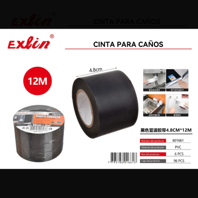 4.8*12m 黑色管道胶带 cinta para cafos, color negro, 4.8cmx 12 m