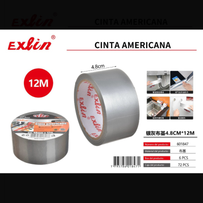 4.8*12m银灰布基 cinta americana (cinta de tela), base de tela, color gris plateado, 4.8 cm x 12 m