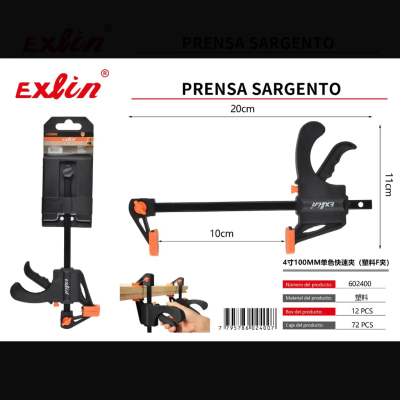 4寸100m m 单色快速夹(塑料F夹)Prensa sargento 4 pulgadas (100 mm), color único, tipo rá...