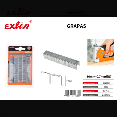 10mm*0.7mm细钉适用于4-14mm钉枪500枚 Grapas 10mmx 0.7mm finas para engrampadora 4-14mm (500 unidades)