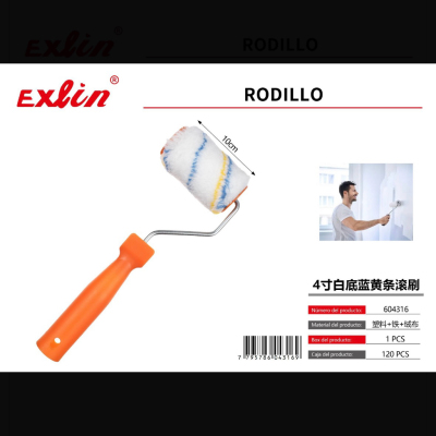 4寸白底蓝黄条滚刷大100mm rodillo,4 pulgadas, base blanca con franjas azul y amarilla, grande, 100 mm