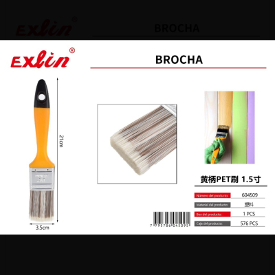1.5寸黄柄油漆刷 PET37.5mm brocha, 1,5 pulgadas, mango amarillo, PET, 37,5 mm