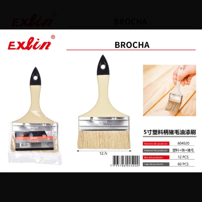 5寸塑料柄猪毛油漆刷125mm brocha, 5 pulgadas, mango de plástico, pelo de cerda, 125 mm