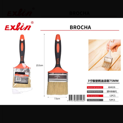 3寸橡塑柄油漆刷75mm brocha,3 pulgadas, mango de caucho y plástico, 75 mm