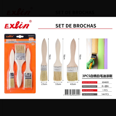 3PCS白柄白毛油漆刷 brocha,3 unidades,mango blanco,pelo blanco