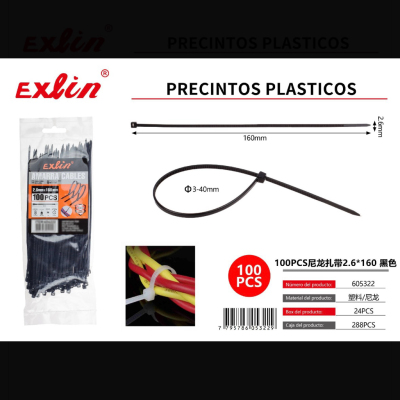 100PCS 尼龙扎带2.6*160 黑色 precintos de plastico de nylon, 2,6 x 160 mm, color negro, x100