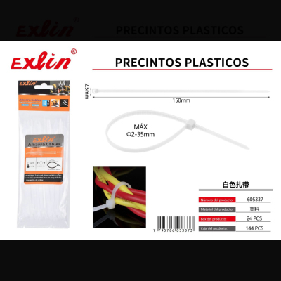 白色扎带 60根 产品尺寸:2.5*150mm Precintos plasticos blancos, 60 unidades, 2.5 x 150 mm