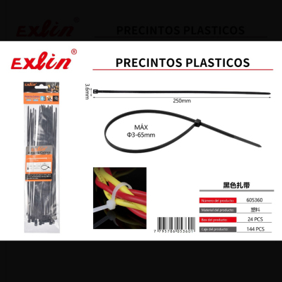 黑色扎带 40根 产品尺寸:3.6*250mm Precintos plasticos negros, 40 unidades, 3.6 x 250 mm