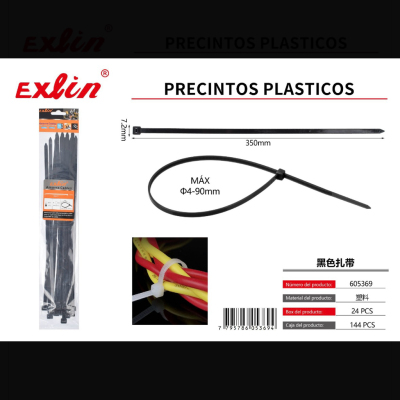 黑色扎带 20根 产品尺寸:7.2*350mm Precintos plasticos negros, 20 unidades, 7.2 x 350 mm
