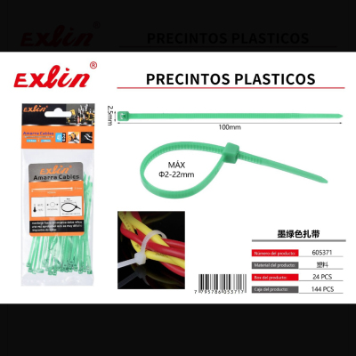 墨绿色扎带40根 产品尺寸:2.5*100mm Precintos plasticos verde oscuro, 40 unidades, 2.5 x 100 mm
