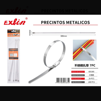 7pc 不锈钢扎带 4.6*300mm Precintos metalicos: 7 unidades,abrazaderas de acero inoxidable 4,6 x 300 mm