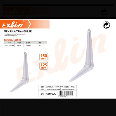 三角支架5*6 150*125*0.8白色 mensula triangular, 5x6,150x125x0.8 mm, color blanco