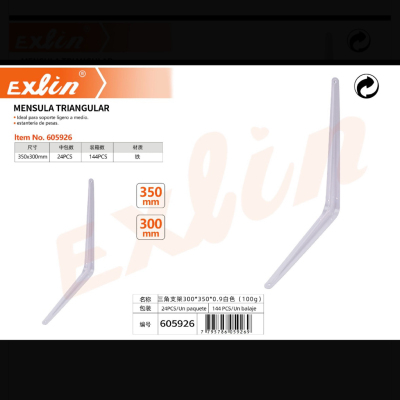 三角支架12*14 300*350*0.9白色 mensula triangular, 12x14,300x350x0.9 mm, color blanco