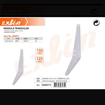 三角支架5*6(AA) 150*125高筋款44g 白色 MENSULA TRIANGULAR, soporte triangular, 5 x 6 (AA), 150 x 125 m...