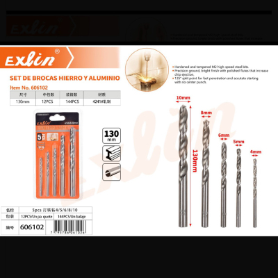 五件套打钢钻4/5/6/8/10mm set de mecha para metal(hierro yaluminio),5 piezas,4 mm/5 mm/6 mm /8 mm/10mm