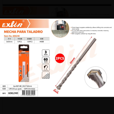 2pc强力建工钻3*60mm mecha para taladro,2 piezas, brocade construcción resistente, 3 mm x60 mm