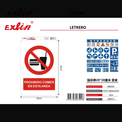 指示牌20*30厘米 禁食 letrero de serializacion, 20 × 30cm,prohibido comer