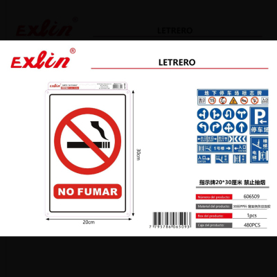 指示牌20*30厘米 禁止抽烟 letrero de señalización, 20x30cm, no fumar