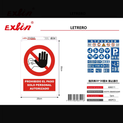 指示牌20*30厘米 禁止通行 letrero de serializacion, 20×30cm, prohibido el paso