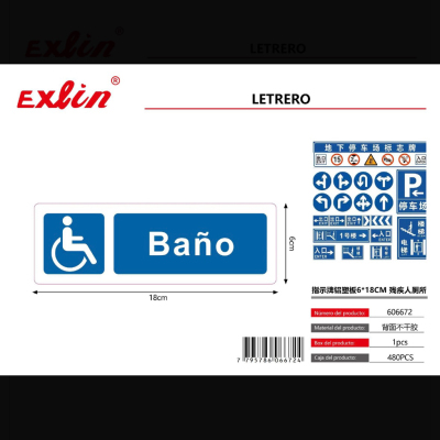 指示牌铝塑板6*18CM 残疾人厕所 letrero de sefializacion,placa de aluminio y plástico, 6x18 cm, baño para persona...
