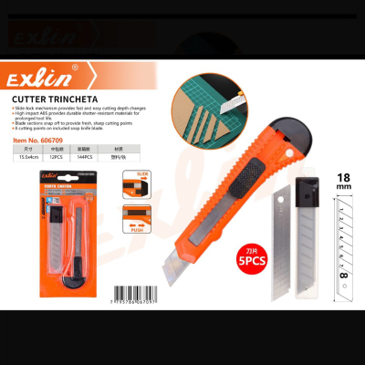 塑料美工刀A配3PCS刀片 cutter trinchera de plastico, con x3 cuchillas de repuesto