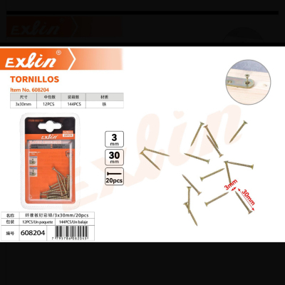 纤维板钉彩锌/3x30mm/30pcs tornillos para panel de fibra,zincados color, 3x30 mm, 30 piezas