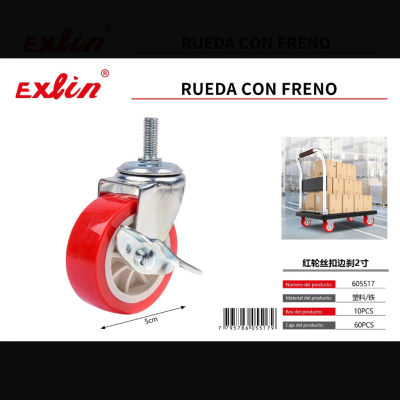 红轮丝扣边刹2寸 Rueda giratoria roja con rosca y freno, 2 pulgadas