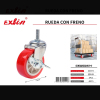 红轮丝扣边刹3寸 Rueda giratoria roja con rosca y freno, 3 pulgadas