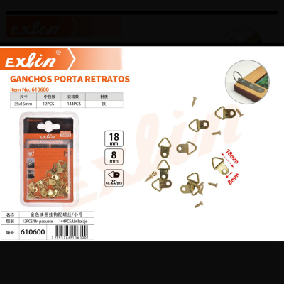 金色油画挂钩配螺丝/小号(18×8mm)/20sets