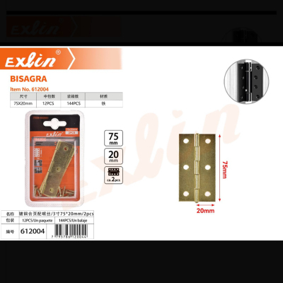 镀铜合页配螺丝/3寸75*20mm/2pcs 144