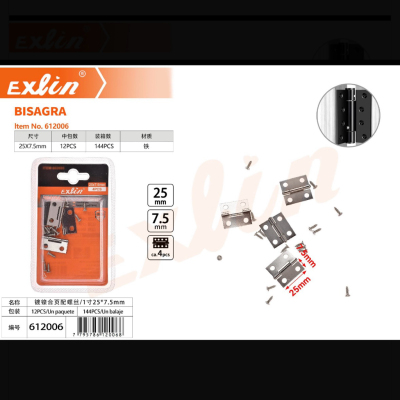 镀镍合页配螺丝/1寸25*7.5mm/4pcs 144