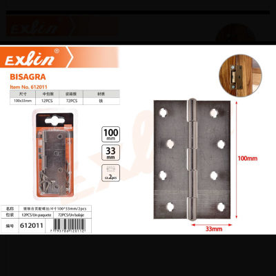 镀镍合页配螺丝/4寸100*33mm/2pcs 72