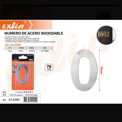 7.5cm小号数字牌 0 numero de acero inoxidable, 7,5cm,tamaño pequeño, 0