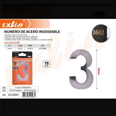 7.5cm小号数字牌 3 numero de acero inoxidable, 7,5cm,tamaño pequeño, 3