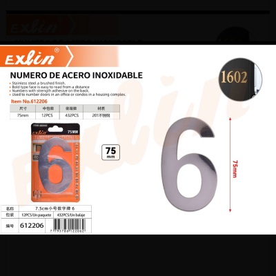 7.5cm小号数字牌 6 numero de acero inoxidable, 7,5 cm,tamaño pequeño, 6