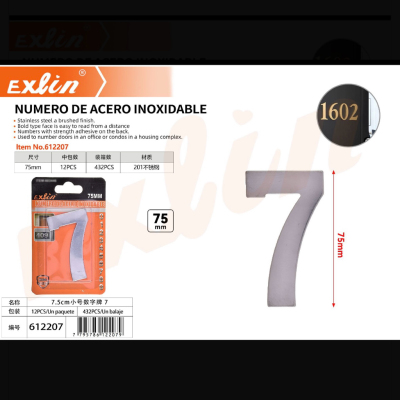 7.5cm小号数字牌 7 numero de acero inoxidable, 7.5cm,tamaño pequeño, 7