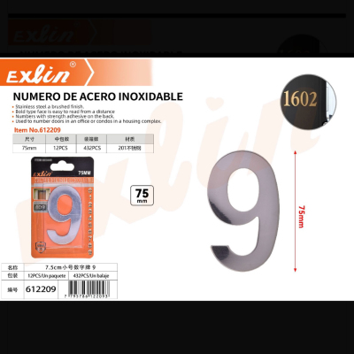 7.5cm小号数字牌 9 numero de acero inoxidable, 7,5cm,tamaño pequeño, 8