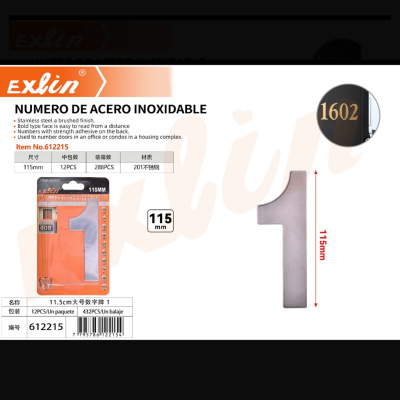 11.5cm 大号数字牌 1 numero de acero inoxidable, 11,5cm,tamaño grande, 1