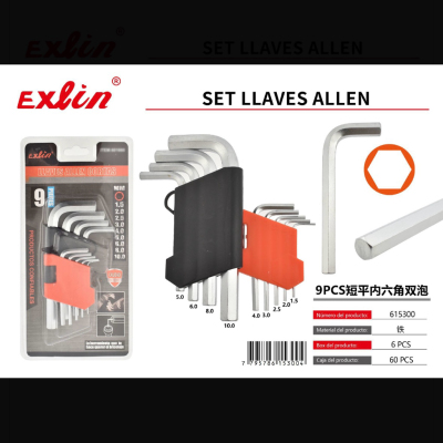 九件套内六角短平 1.5/2/2.5/3/4/5/6/8/10mm Set de llaves Allen cortas y planas, 9 piezas: 1,5 / 2 / 2,5 /3/4/5/6/8/10mm