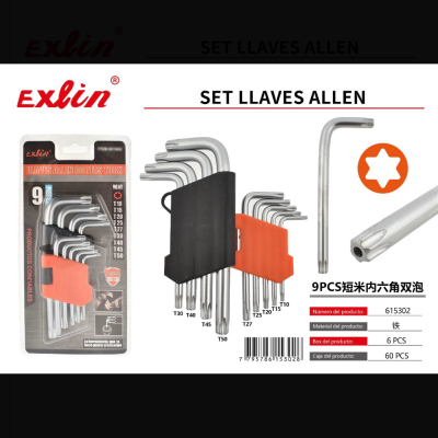 九件套内六角短米 T10/T15/T20/T25/T27/T30/T40/T45/T50mm Set de llaves Allen cortas tipo métrica, 9 piezas:...