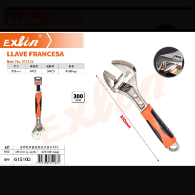 多功能双色套柄活动扳手12寸 好质量 Iave francesa, ajustable, mango bicolor, 12 pulgadas