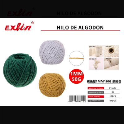 棉线球1mm*50G 单彩色 hilo de algodon, madeja de algodon,1 mm x 50 g, color sólido