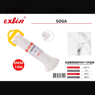 尼龙绳带挂钩8mm*10m 白色清装 soga de nailon, cuerda con gancho, 8 mm x 10 m, color blanco, empaque simple