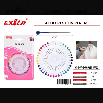 吸卡単↑珠光針 彩色 alfiler con perla, multicolor x1
