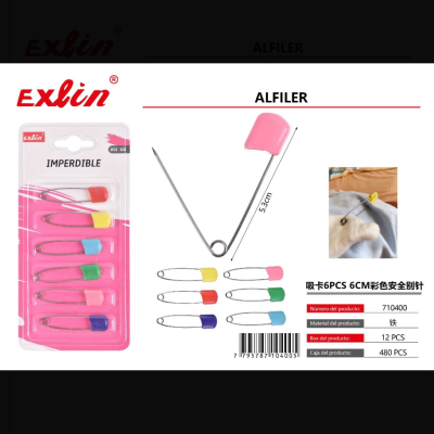 吸卡6PCS 6CM彩色安全别针 alfileres de seguridad multicolor 6 cm x6