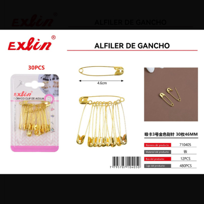吸卡3号金色別針 30枚46MM alfileres dorados 46 mm x30