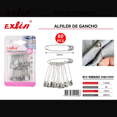 吸卡1号银色别针60枚32mm alfileres plateados 32 mm ×60